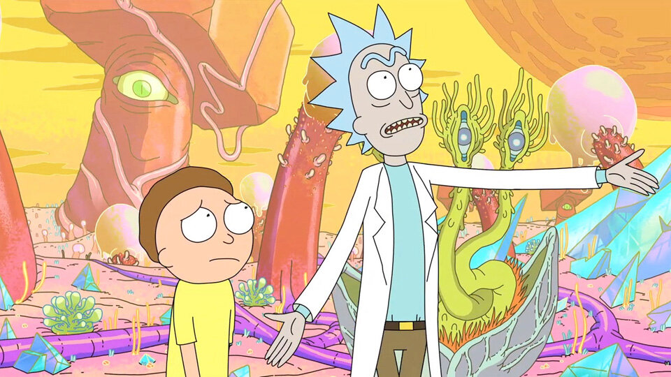 В центре сюжета - школьник по имени Морти и его дедушка Рик. Морти - самый обычный мальчик, который ничем не отличается от своих сверстников. А вот его дедуля занимается необычными научными исследованиями и зачастую полностью неадекватен. Он может в любое время дня и ночи схватить внука и отправиться вместе с ним в безумные приключения с помощью построенной из разного хлама летающей тарелки, которая способна перемещаться сквозь межпространственный тоннель. Каждый раз эта парочка оказывается в самых неожиданных местах и самых нелепых ситуациях.